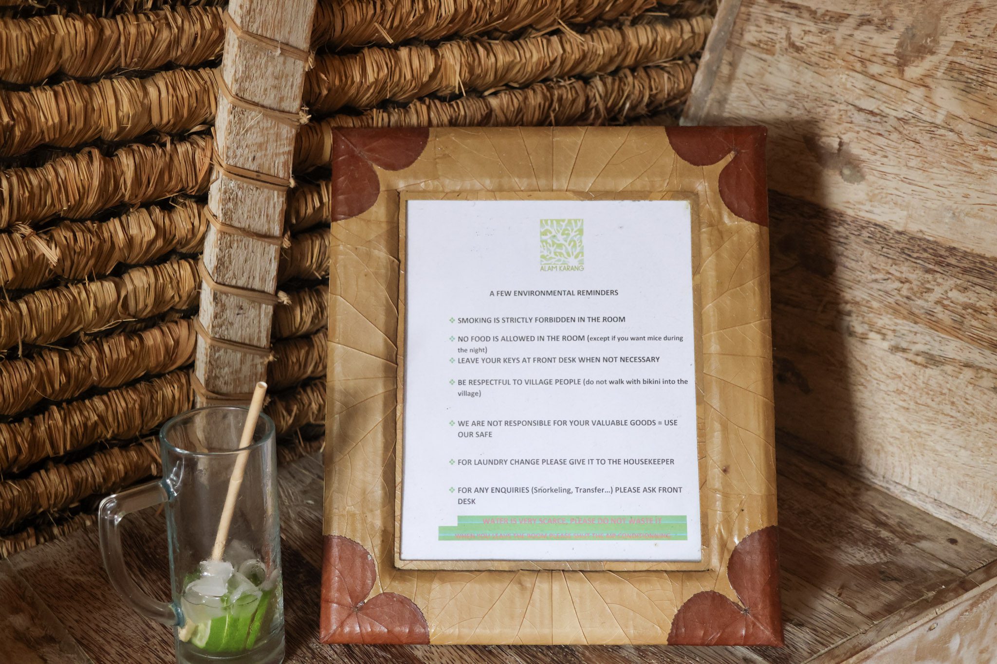 L’hôtel affiche pourtant une politique environnementale engagée avec bonbonne d’eau dans la chambre, panneaux solaires, coupure de l’électricité à horaires fixes pour réduire la consommation, etc. Nous avons également aperçu plusieurs employés ramasser les déchets sur la plage mais cela ne semble pas empêcher les déchets de s’accumuler. C’est vraiment dommage pour un endroit aussi beau.
