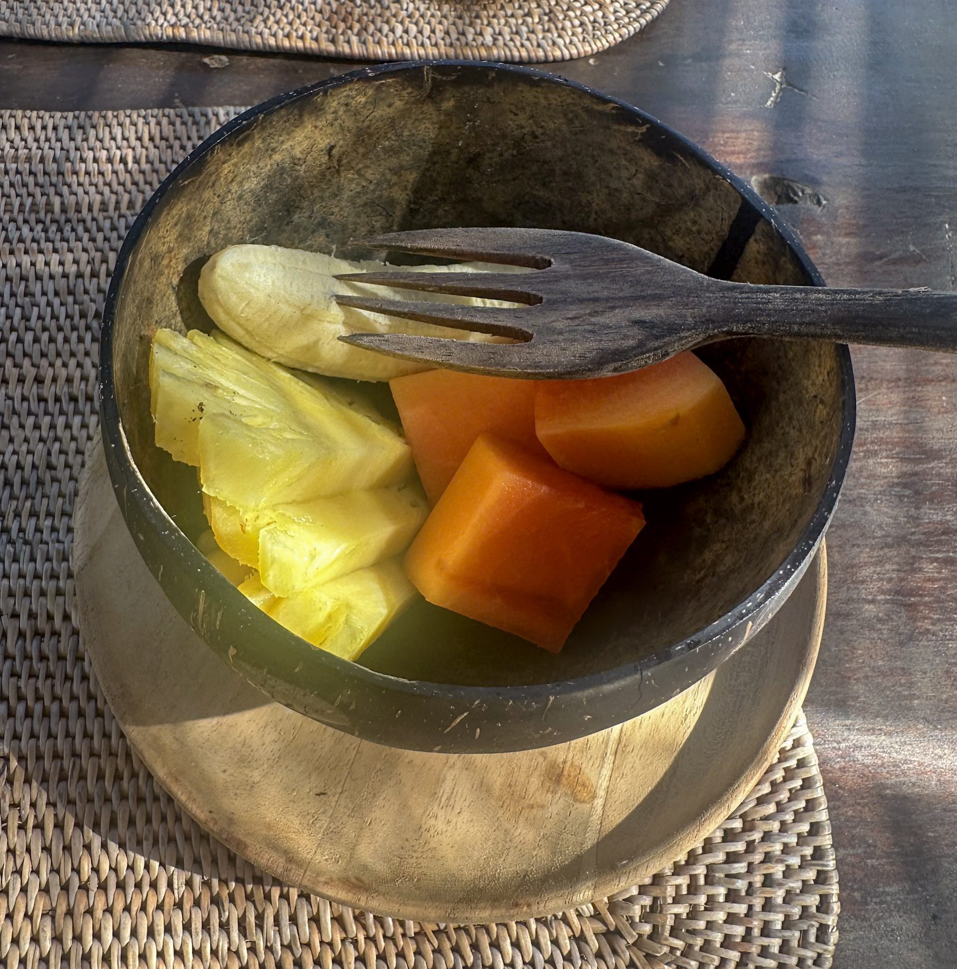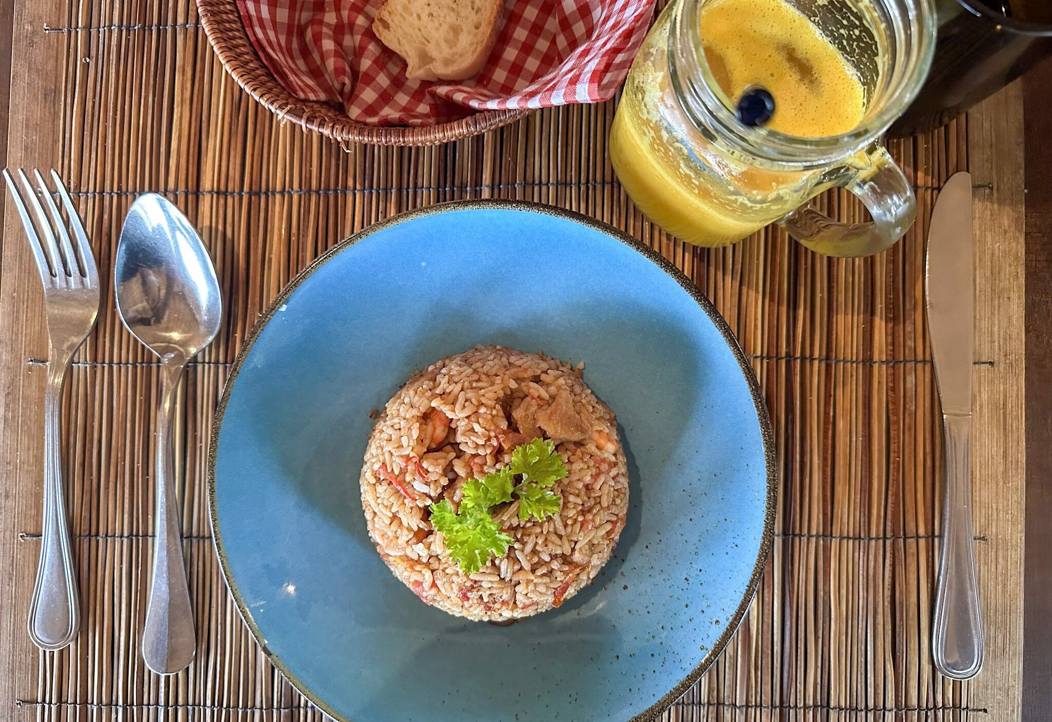 Le soir, on dîne à nouveau à l’hôtel. Le lieu est tellement isolé qu’on n’avait de toute façon pas vraiment d’alternative. Le repas est bon, l’ambiance calme, mais le contraste entre le cadre idyllique et la réalité environnementale reste en tête.