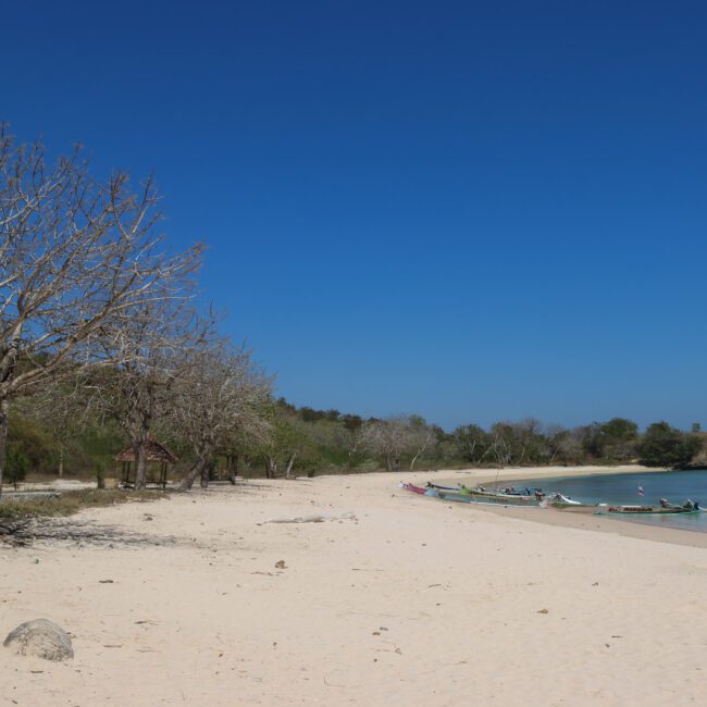 Sur la route vers le prochain hébergement, nous nous sommes arrêté à Pantai Mekaki. Et là, bonne surprise : une plage gratuite, déserte, très peu de déchets, un décor naturel superbe avec une mer calme et des couleurs incroyables. Clairement l’une des plus belles plages que nous ayons vues à Lombok. Un arrêt simple, sans infrastructures touristiques, mais exactement ce qu’on aime. On recommande sans hésiter.
