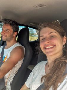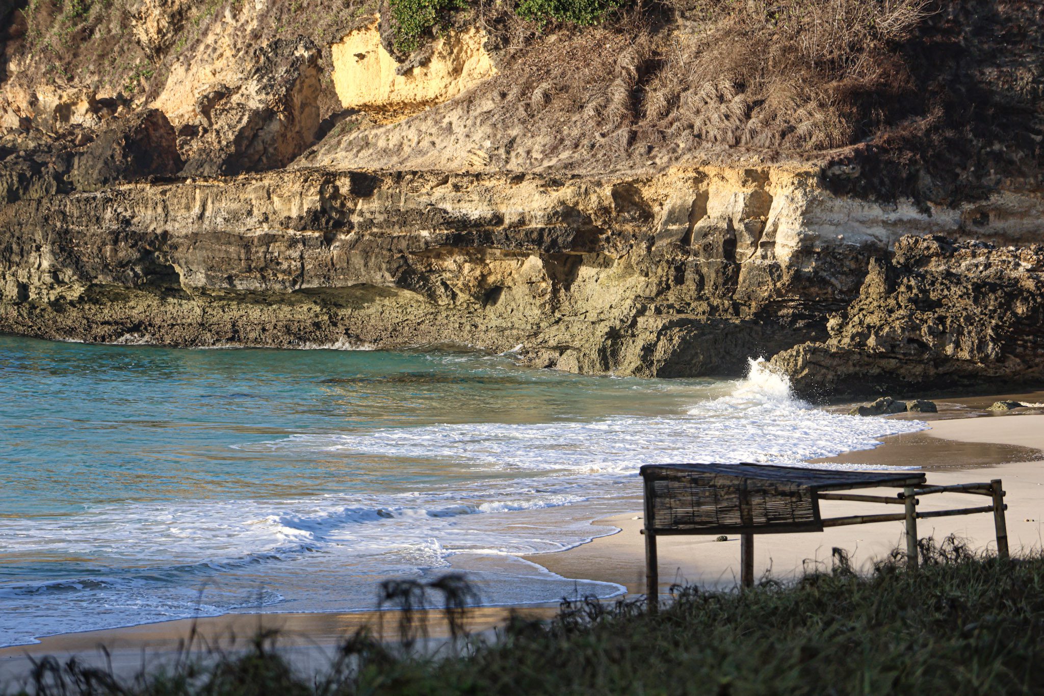 Le lendemain, réveil au lever du soleil, moment paisible et magnifique. Après le petit-déjeuner, on voulait explorer les plages des alentours. Des vélos sont disponibles, mais Amine avait mal au bras donc impossible pour lui d’en faire. Du coup, nous avons loué un scooter. Initialement, on voulait voir la fameuse Pink Beach, mais le réceptionniste nous explique honnêtement qu’elle n’est pas vraiment rose et surtout très touristique. Il nous oriente vers une autre plage rose mais moins touristique. Le chemin entre l’hôtel et la route principale est caillouteux et compliqué, mais une fois sur la route en scooter, la sensation de liberté est incroyable. Beaucoup de plages sont malheureusement payantes. L’entrée de la plage où nous sommes allés coûtait 20 K IDR pour 2 soit 1€ au total. Par contre attention, il y a une énorme pente pour descendre sur la plage donc probablement très compliqué à vélo ! Là encore quelques déchets sur la plage et dans l’eau, mais rien comparé à la plage de l’hôtel ! On se baigne un peu, puis retour à l’hôtel pour faire les valises et continuer notre road trip.