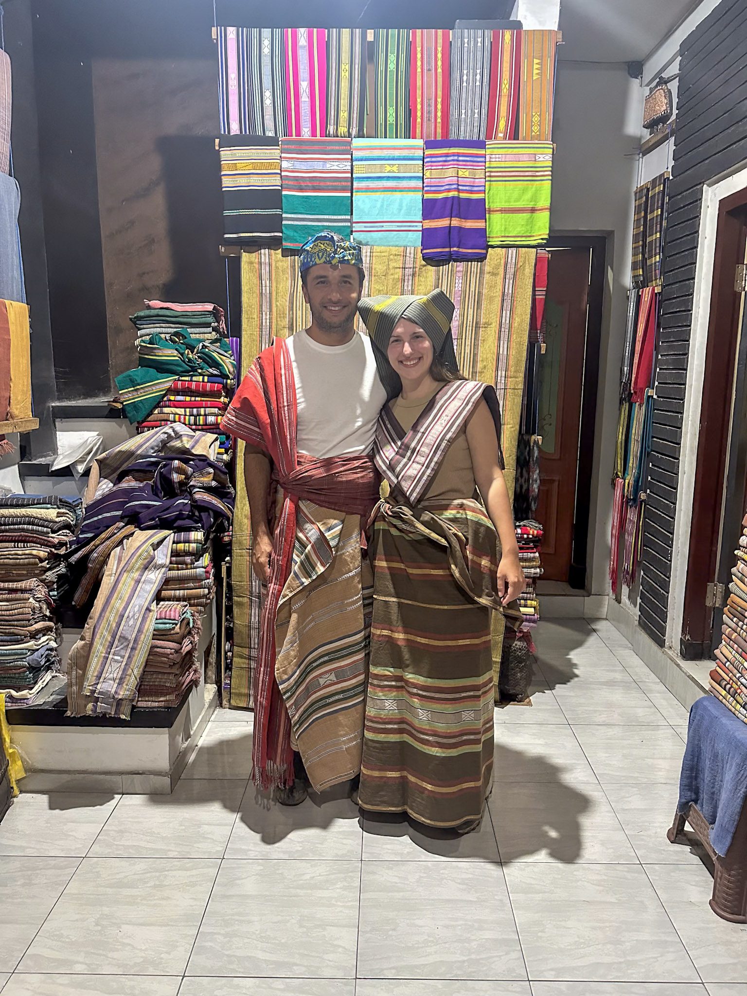 Contrairement à certaines idées reçues, la pression vestimentaire est faible pour les voyageurs. Shorts, débardeurs ou robes légères ne nous ont valu aucune remarque, y compris dans des zones peu touristiques. En revanche, lors de la visite de Masjid Bayan Beleq, le guide nous a demandé à tous les deux de porter un sarong. La demande était respectueuse, nous l’avons accepté, tout simplement.