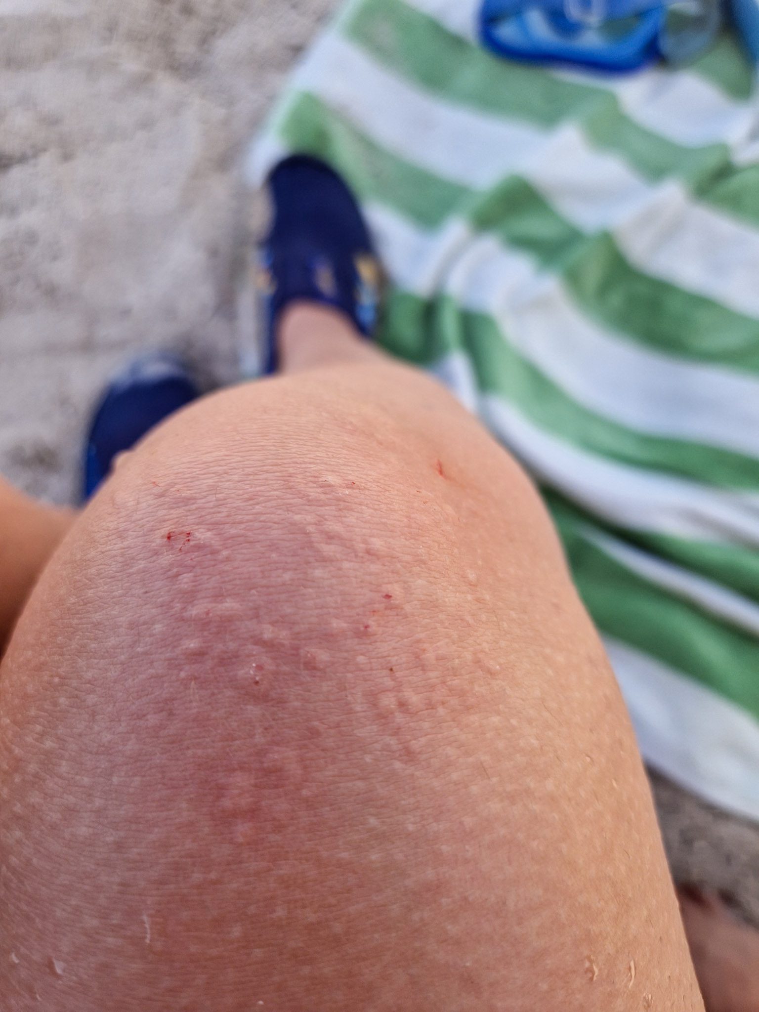À Gili Gede, je me suis blessée sans le vouloir sur un corail, lors d’une baignade à marée basse. Les coraux étaient de plus en plus proches, donc je décide de faire demi-tour, pour éviter de les toucher. Mais malheureusement, dans le mouvement, mon genou effleure un corail. Sur le moment, ça pique un peu, ça saigne, mais rien d’alarmant. La propriétaire me fournit du papier imbibé de vinaigre blanc à laisser poser 1h sur la plaie. Ce que je fais, malgré la sensation de brûlure.