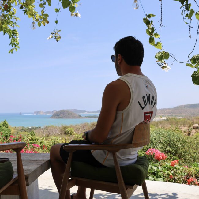 La vue depuis la chambre est tout simplement exceptionnelle, avec un coucher de soleil magnifique, sans doute le plus beau de tout le voyage. On s’est posé avec un cocktail, face à l’horizon, pour finaliser les derniers détails du blog. C’est ici, à Lombok, que Voyager Mieux a officiellement été lancé, moment symbolique et très spécial pour nous.