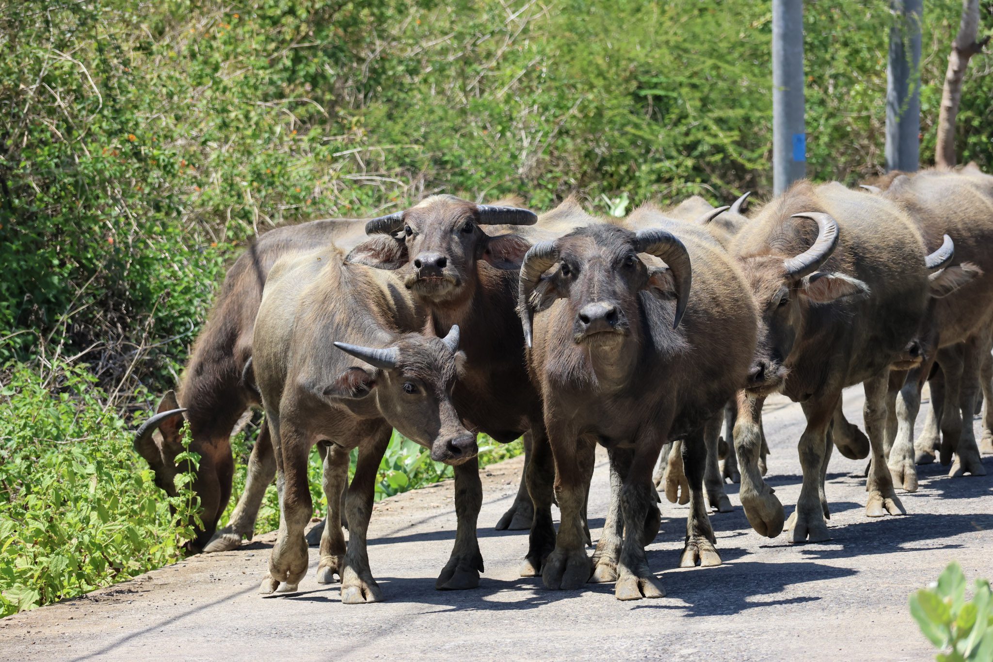 Le lendemain matin, descente à pied vers la plage située en contrebas de la colline. Par contre, la remontée est longue, raide et éprouvante sous la chaleur. Le décor est authentique : maisons, vaches, moutons, etc. puis une plage absolument sublime, vide, sauvage. Malheureusement, une longue bande de déchets longe le sable. Le contraste est violent : un lieu paradisiaque, gâché par la pollution. On s’est baignés, on a pris de supers images au drone, puis retour à l’hôtel pour le check-out.