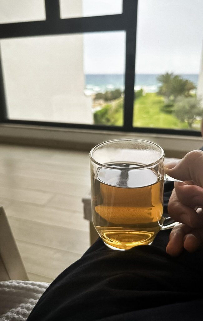 Une fois en chambre, on retrouve de l’eau en bouteille et quelques petits macarons, une attention toujours appréciée. Les chambres sont spacieuses, lumineuses et confortables, avec une décoration minimaliste mais raffinée. Literie agréable, salle de bain élégante, et certaines chambres offrent même une vue directe sur la mer.