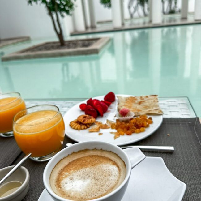 Nous avons séjourné à La Badira à plusieurs reprises au fil des années, et c’est un lieu particulièrement spécial pour nous : c’est sur la plage de l’hôtel, au coucher du soleil, qu’Amine m’a demandé en mariage. Alors forcément, on aime y retourner, ne serait-ce que pour revivre cette émotion.