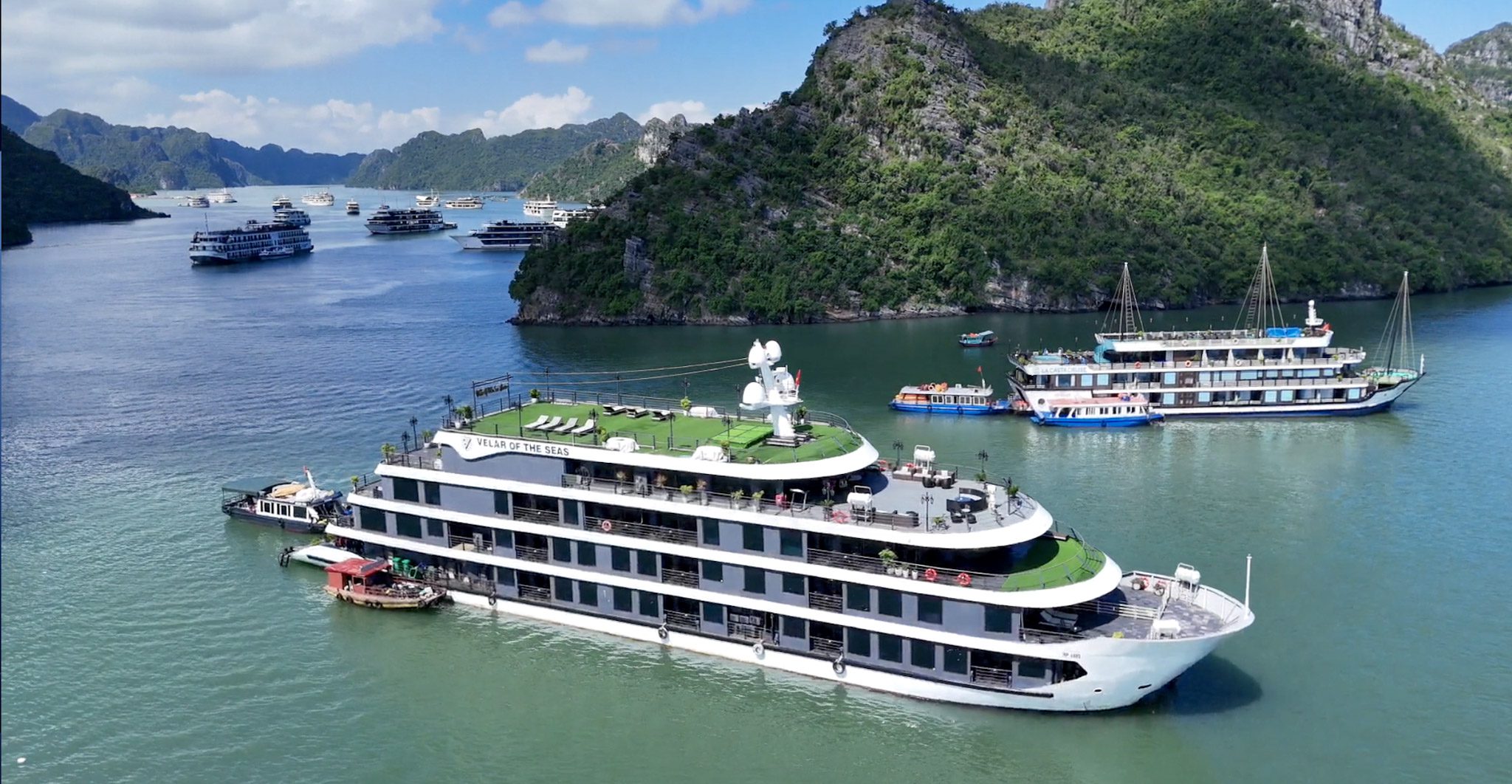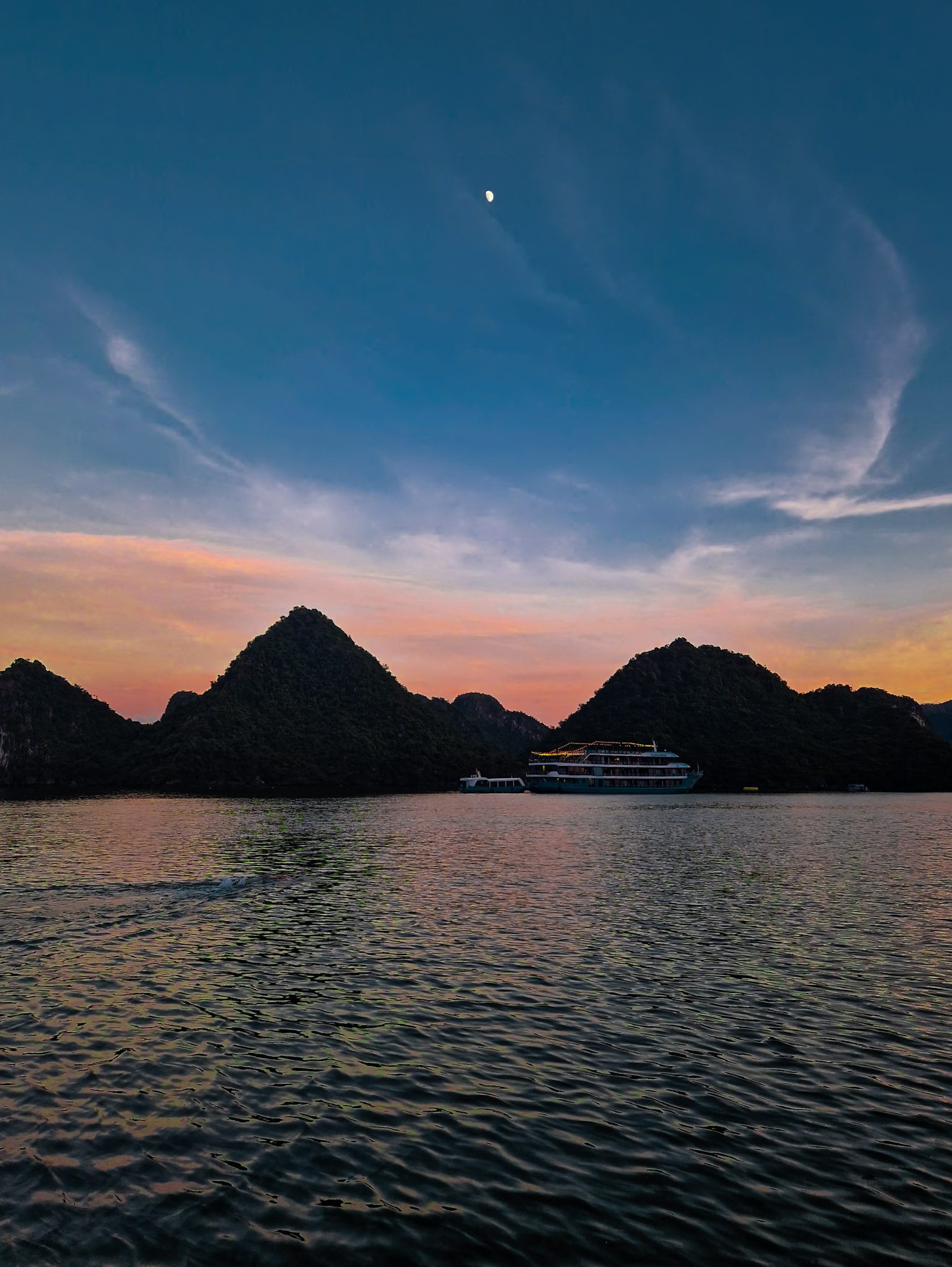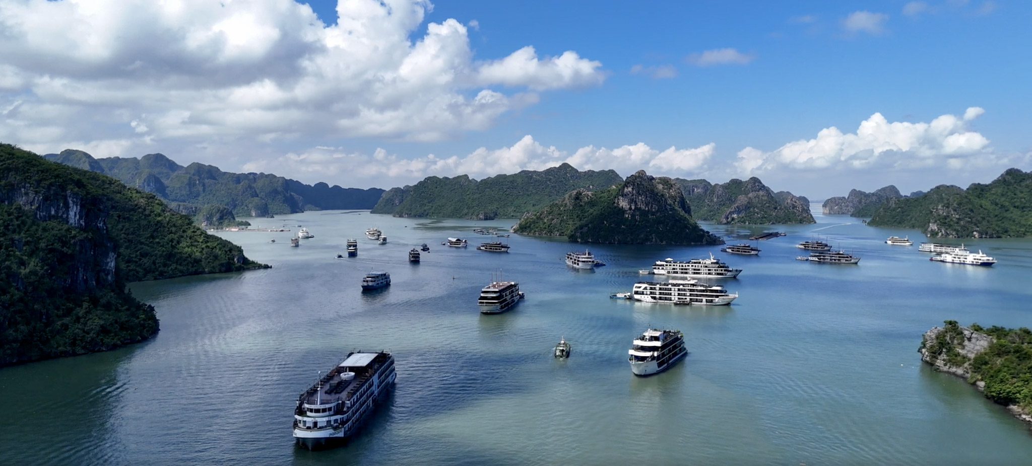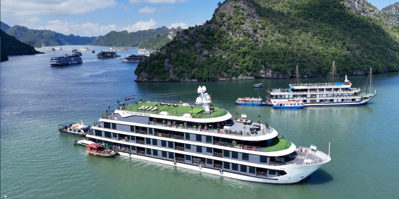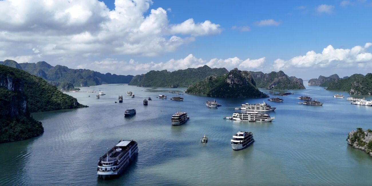 Même si elle est moins fréquentée que la baie d’Halong, la différence ne saute plus vraiment aux yeux une fois sur place : des dizaines de bateaux de croisière sillonnent les mêmes eaux, et la pollution liée à ces navires est bien réelle : bruit, carburant, déchets, lumière.