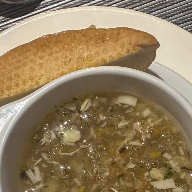 C’est clairement le point faible de la croisière. Nous attendions beaucoup de cette expérience culinaire, surtout avec un “dîner gastronomique en 8 temps” annoncé, mais la réalité était plutôt décevante.