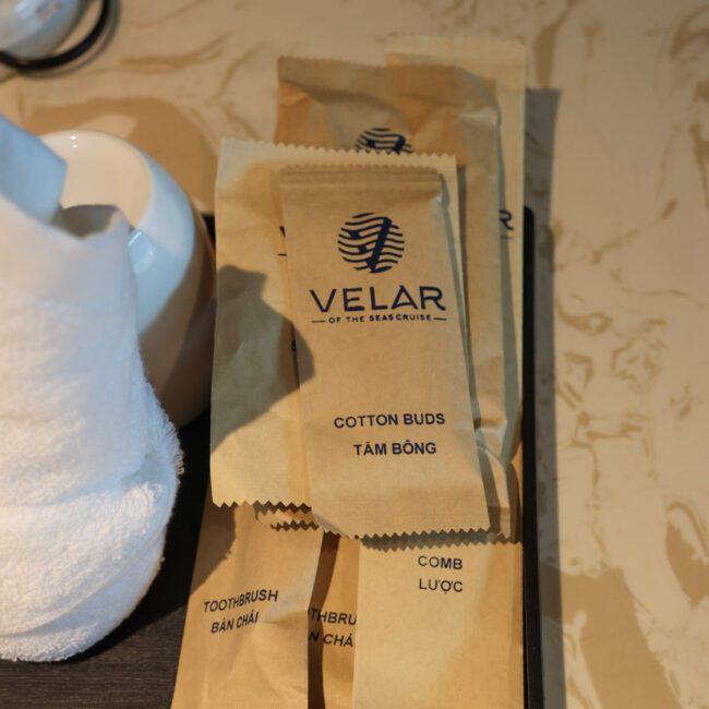 Côté vie à bord, peu de plastique visible (bonne surprise), mais probablement beaucoup de gaspillage alimentaire : buffets trop garnis, dîner en 8 temps que peu de passagers terminent, assiettes bien remplies et non finies…