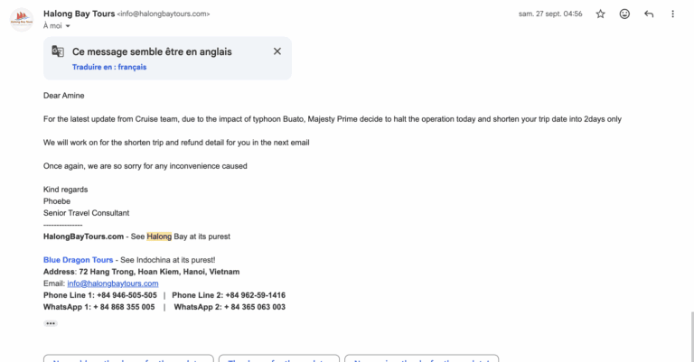 Réserver une croisière dans la baie de Baie de Lan Ha peut vite devenir un vrai parcours du combattant, et notre expérience l’a bien illustré.