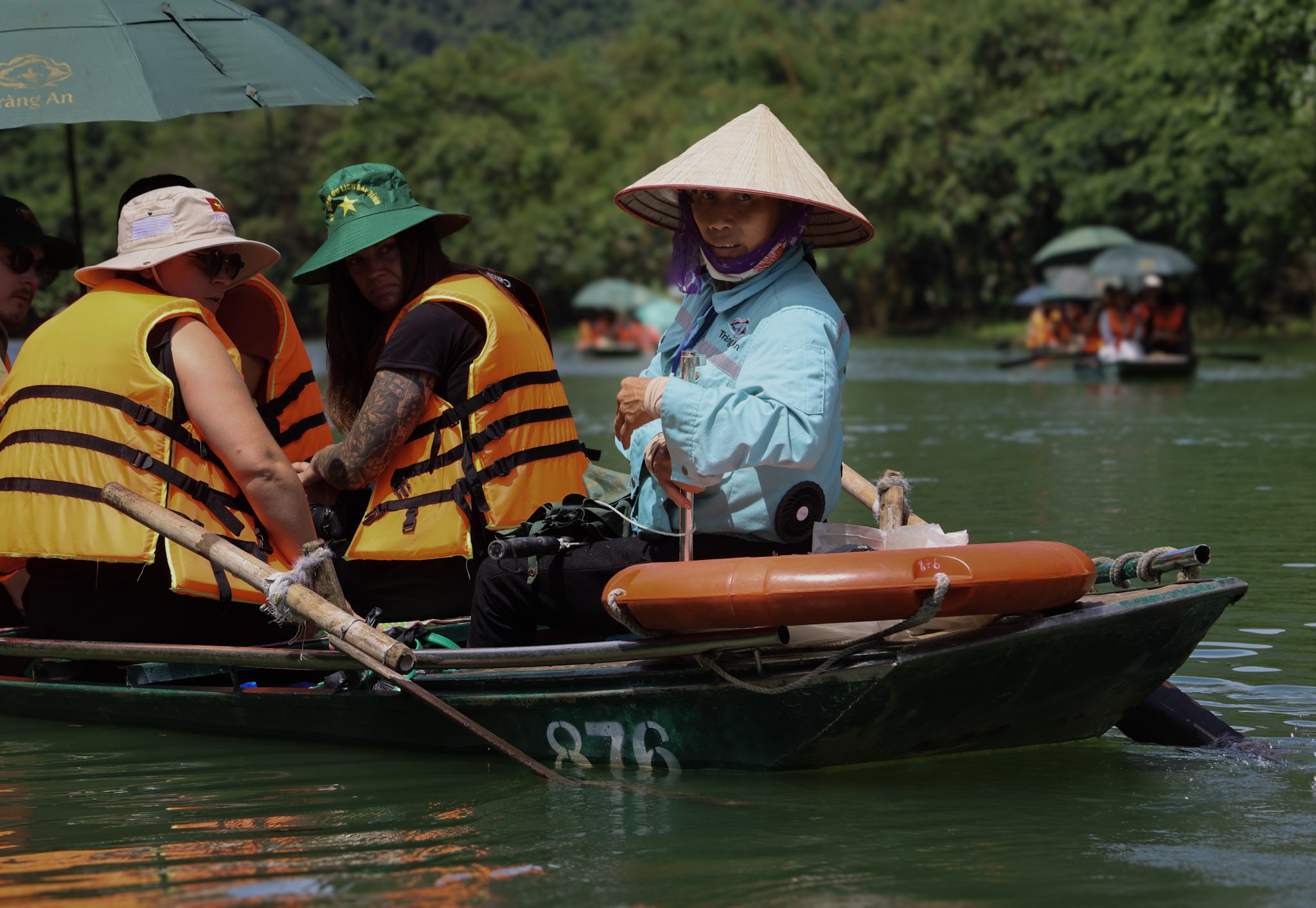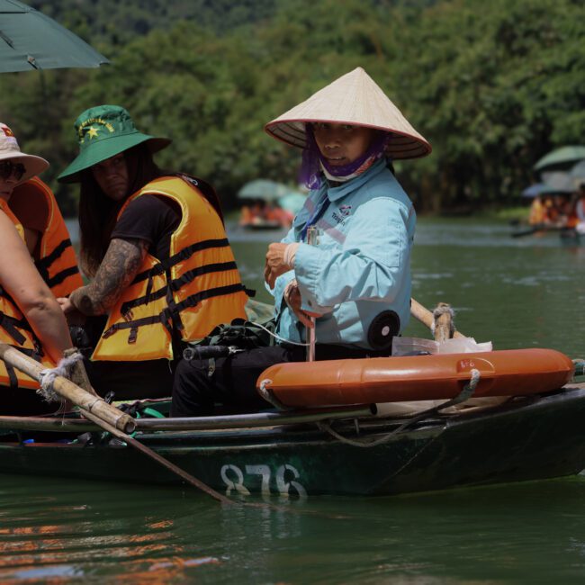 Même constat du côté des balades en barque à Trang An et Tam Coc, où plusieurs centaines de barques naviguent chaque jour sur les rivières. Cela permet à de nombreux habitants, souvent des personnes âgées, de vivre de cette activité, mais le travail est très physique : près de 2h30 à ramer, souvent sous un soleil écrasant, pour un revenu probablement modeste. L’effort mérite le respect, mais le modèle actuel n’est pas soutenable à long terme, ni pour les rameurs ni pour l’écosystème.