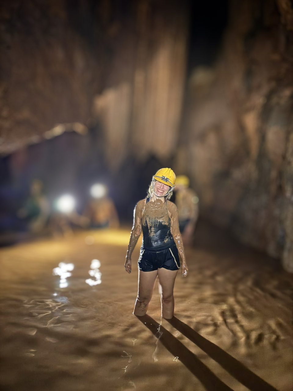 La Dark Cave (aussi appelée Fun Cave), en revanche, est une expérience beaucoup plus fun et sportive. On y accède en tyrolienne ou en canoë, avant de plonger dans l’obscurité totale, lampe frontale sur la tête. L’eau est glaciale, et arrive au niveau de la taille (sauf si vous mettez le pied dans un trou et dans ce cas là vous pouvez ne plus avoir pied !). On finit par le fameux bain de boue, glissant mais hilarant, avant de retourner à la lumière. La boue est riche en minéraux et adoucit la peau — autant allier aventure et soin du corps ! On finit la journée par les jeux aquatiques extérieurs ! Malgré la pluie et la fraîcheur, c’était une journée incroyable, pleine de rires et de bons souvenirs.