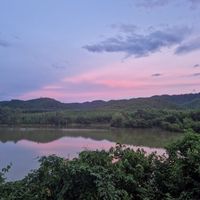 Je voulais absolument vivre une retraite yoga en pleine nature, loin des bruits de la ville et au cœur d’un cadre calme et apaisant. De ce côté-là, c’était une réussite totale : Phong Nha est l’un des endroits les plus tranquilles du Vietnam, et l’hôtel où je logeais offrait exactement l’ambiance recherchée — lever de soleil sur le lac, silence absolu, animaux partout, végétation luxuriante… parfait pour déconnecter.